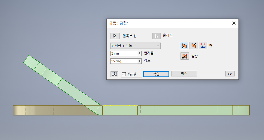 이번에는 굽힘 기능을 사용했다.