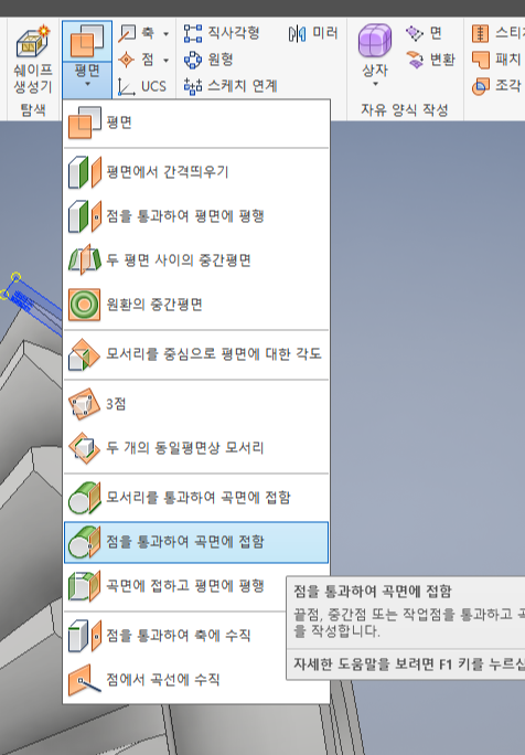 '점을 통과하여 곡면에 접함'을 선택하고