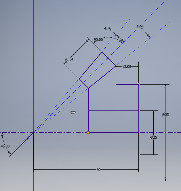 교집합에 작업평면에 그렸던 스케치2와 중심점을 선택하면 이렇게 만들어진다.