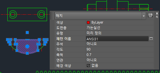 이 때, 해치 부분은 다시 더블 클릭해서 'ANSI31'로 패턴을 변경해준다.