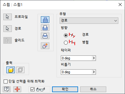방향에는 경로와 병렬이 있는데, 각도에 따라 단면이 기울어지는 경로로 선택한다.
