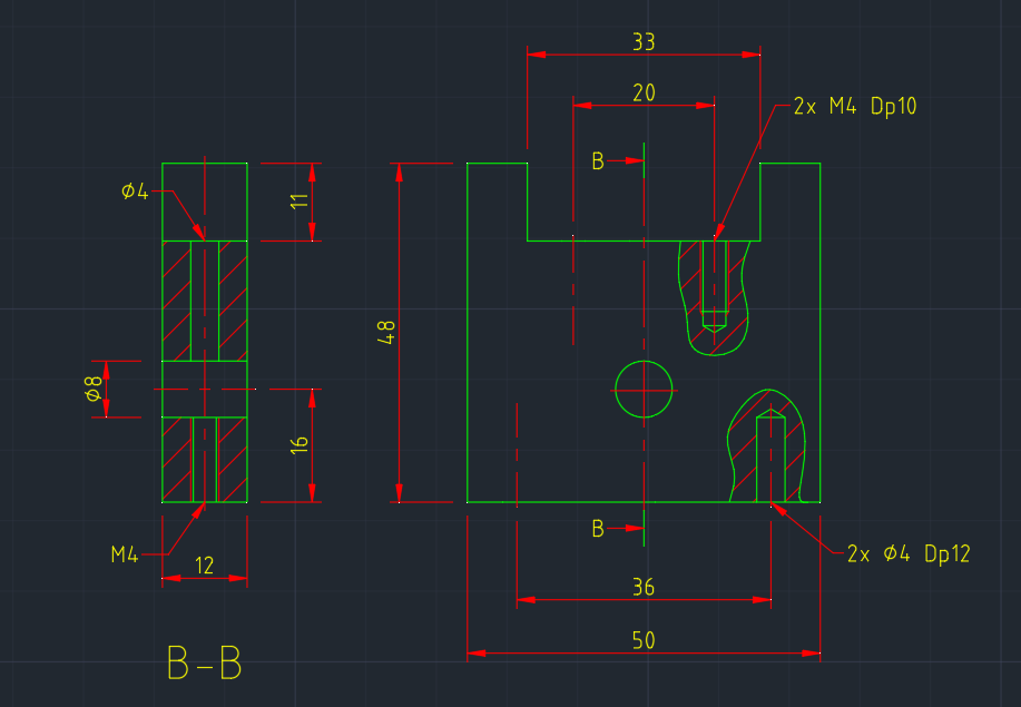 그리고 B-B 단면도에서 위에는 핀구멍, 밑에는 나사라 다르게 표현하고 기입해야하는 것이 매우 중요!!