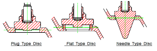 글로브 밸브의 디스크 형태로 가장 많이 사용되는 형태